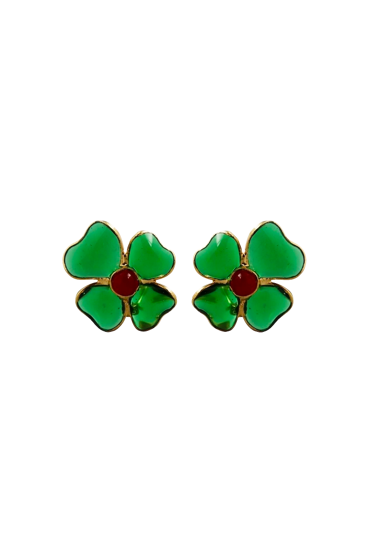 Pour faire ces boucles d'oreille, nos artisans coulent le verre méticuleusement dans le métal. Il faut des années pour maîtriser ce savoir-faire traditionnel.